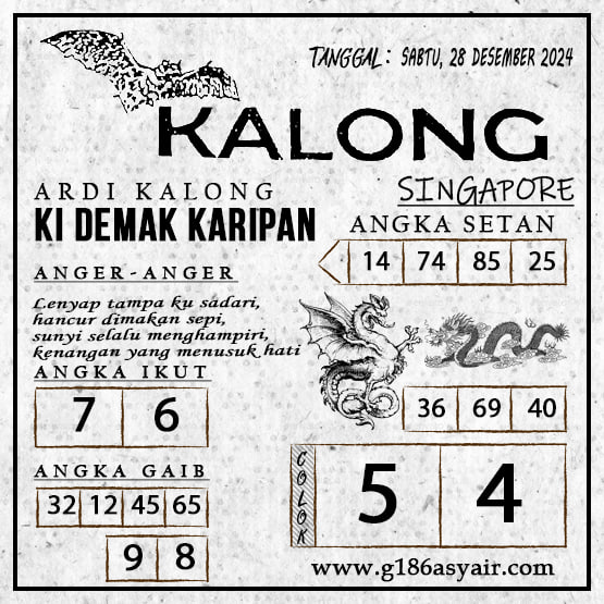 SYAIR TOGEL KALONG SINGAPORE , SABTU, 28 DESEMBER 2024 |