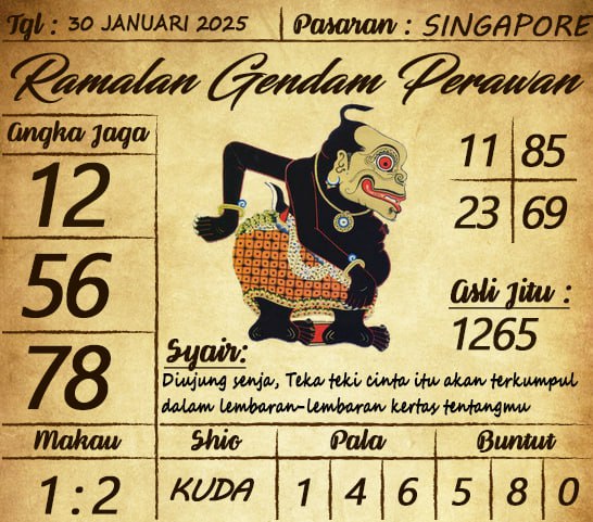 SYAIR TOGEL GENDAM SINGAPORE , KAMIS 30 JANUARI 2025 |